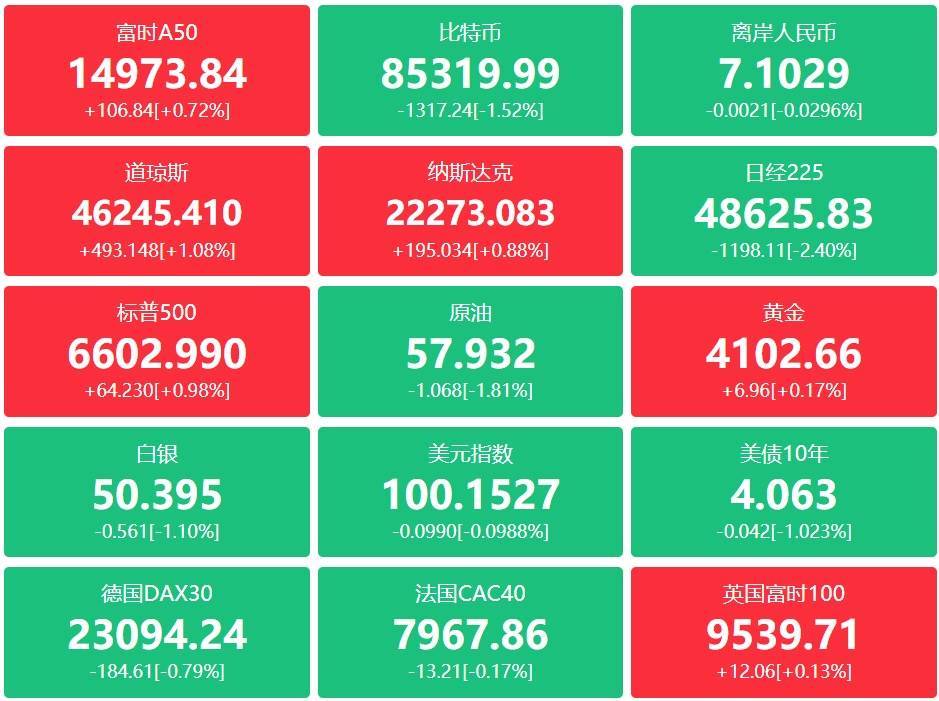 美联储“鸽声”提振市场,三大指数集体反弹,截至收盘,道琼斯指数涨1.08%,报46,245.41点;标普500指数涨0.98%,报6,602.99点;纳斯达克指数涨0.88%,报22,273.08点。